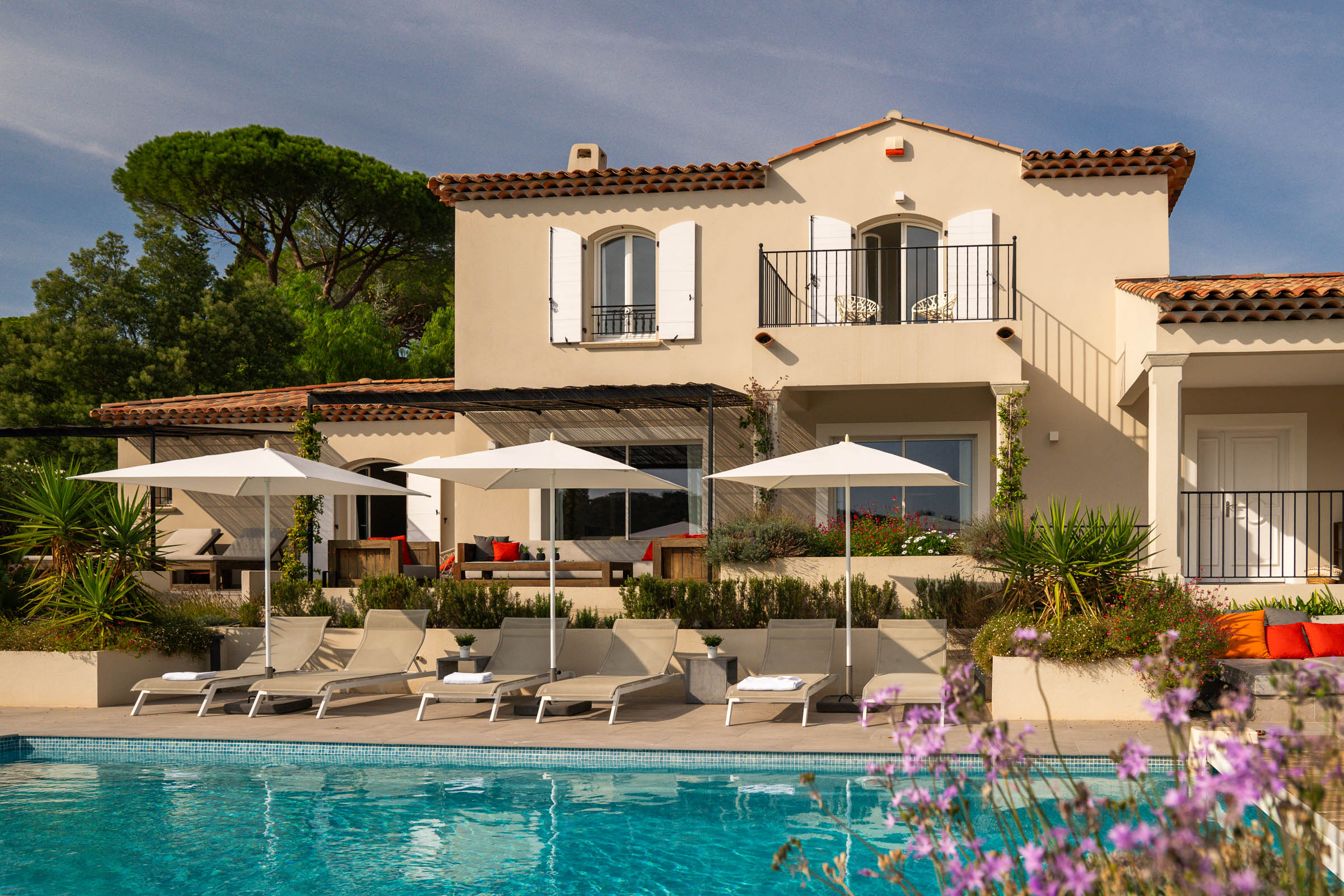 La propriété nouvellement construite à l’entrée des Issambres (directement derrière la limite municipale à Sainte Maxime) est située au calme dans un domaine privé sécurisé par des portes avec un développement villa équivalent. La plage et les restaurants sont à environ 1.000 m, un supermarché bien achalandé et le ferry pour Saint-Tropez sont à 1.400 m, d’autres commerces de première nécessité à environ 1.600 m. C’est donc un emplacement idéal, proche de toutes les commodités !