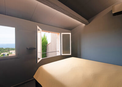 – chambre avec lit double (160 x 200 cm) et vue sur la mer